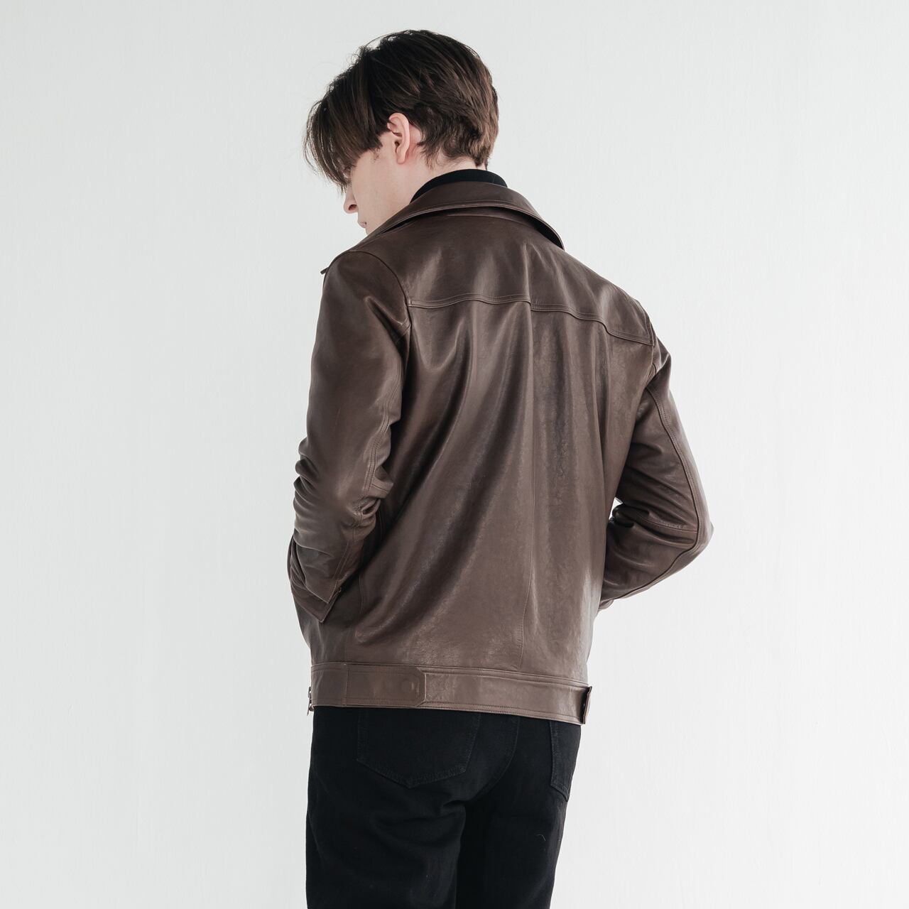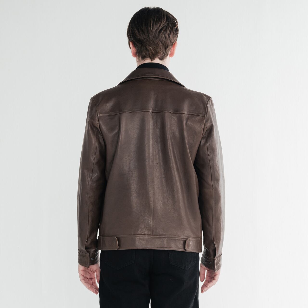 -柔らかくしなやかなラムレザーで、着るほどに体に馴染むフィット感。