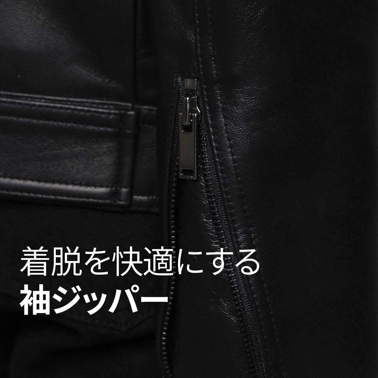 通常のナッパレザーよりも厚みがありながら、柔らかさとしなやかさを兼ね備え、着るほどに体に馴染む極上の質感を楽しめます。