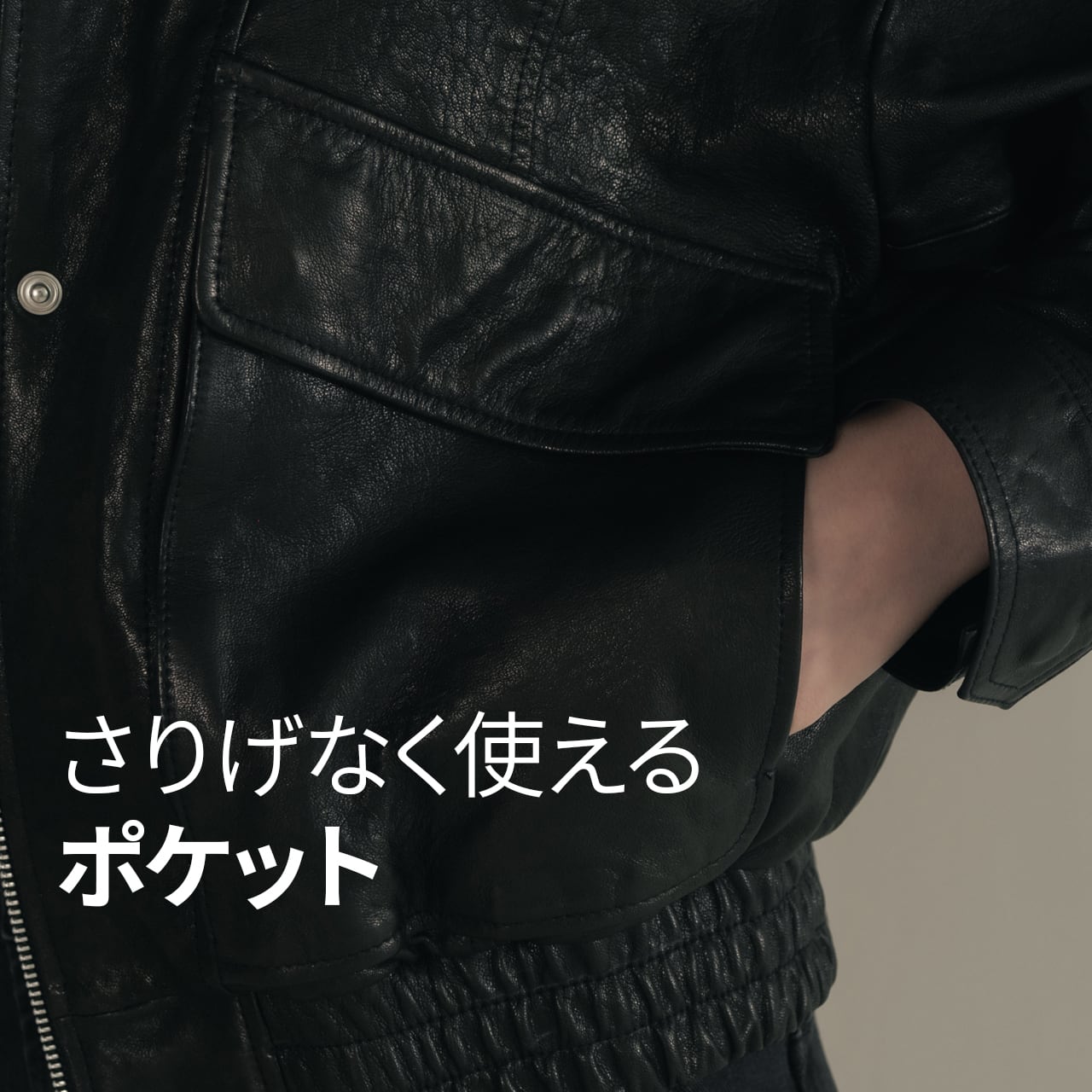 -柔らかくしなやかなラムレザーで、着るほどに体に馴染むフィット感。